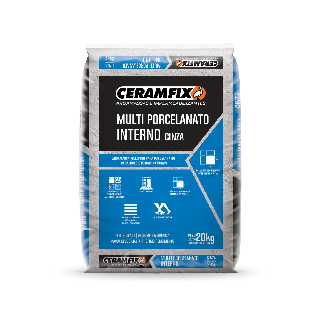 É uma argamassa colante especial de alta aderência e resistência mecânica indicada para o assentamento de placas cerâmicas e porcelanatos em áreas internas.